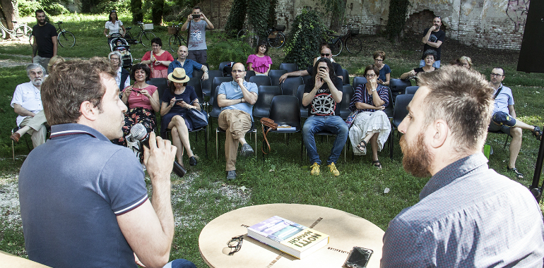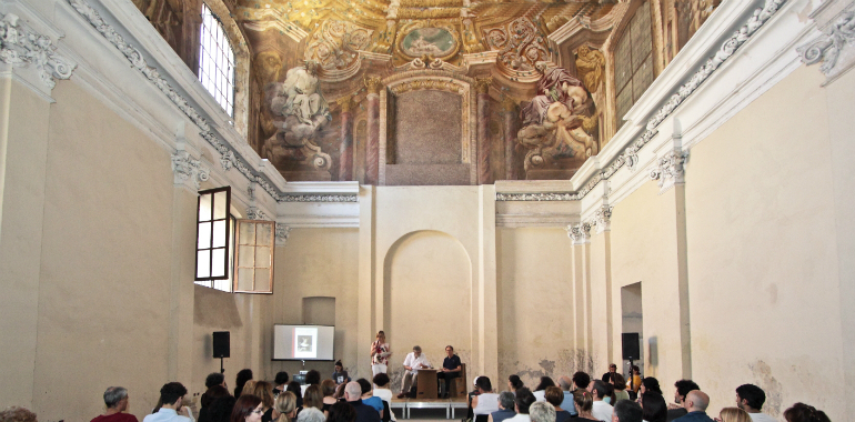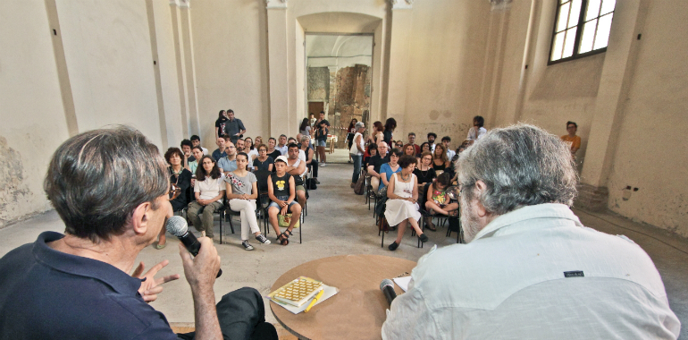 In mattinata, nello spazio di via Bissolati, Errico Buonanno ha conversato con Riccardo Maruti intorno al libro “Notti magiche. Atlante sentimentale degli anni Novanta”, ed. Utet; poco più tardi è stata la ex chiesa di san Benedetto di via Dei Mille, con il grandioso affresco del giudizio universale del Massarotti, ad ospitare l’incontro con Maurizio Bettini e Giuseppe Pucci, introdotti da Marina Volonté, su un tema mitologico: “Il Mito di medea. Immagini e racconti dalla Grecia ad oggi”, ed. Einaudi.
