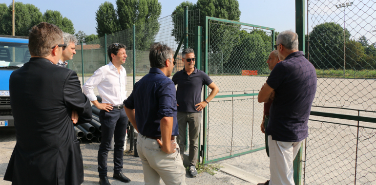 Un momento per fare il punto in loco sull’andamento dei lavori per la riqualificazione del campo. L’intervento, per il quale il Comune ha investito circa 350mila euro, consiste nella sostituzione del manto con uno di ultima generazione e di un’altra serie di interventi di dettaglio.