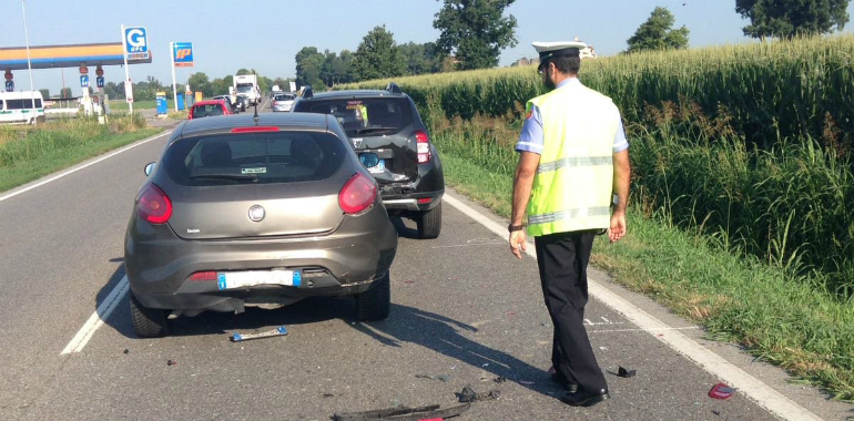 Tamponamento a catena nella mattinata di lunedì in via Giuseppina, intorno alle 7.35. Una Fiat Bravo, condotta dal 52enne B. G., ha tamponato una Dacia Daster ferma ed incolonnata con a bordo la 58enne B.I. Ques’ultima è stata sospinta in avanti, arrivando a sua volta a tamponare una Mitsubishi, anch’essa in coda, condotta dalla 41enne G. S. Infine è arrivata una Audi A3, condotta dal 50enne G. G., che è finita contro la prima auto, la Fiat Bravo. Le due conducenti hanno riportato alcune lievi contusione e si sono recate in ospedale per un controllo. Sul posto gli agenti della Polizia Locale di Cremona, che si sono occupati dei rilievi del caso.