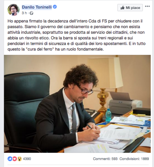 E senza fare riferimenti all’incidente di ieri sera, qualche ora fa il ministro ai Trasporti Danilo Toninelli ha risposto indirettamente alle critiche degli amministratori cremonesi che gli avevano chiesto un incontro, un mese fa sul tema delle infrastrutture, senza mai ricevere risposta: “Ho appena firmato la decadenza dell’intero Cda di FS per chiudere con il passato – posta il ministro di origine soresinese sul suo profilo Facebook -. Siamo il governo del cambiamento e pensiamo che non esista attività industriale, soprattutto se prodotta al servizio dei cittadini, che non abbia un risvolto etico. Ora la barra si sposta sui treni regionali e sui pendolari in termini di sicurezza e di qualità dei loro spostamenti. E in tutto questo la ‘cura del ferro’ ha un ruolo fondamentale”.