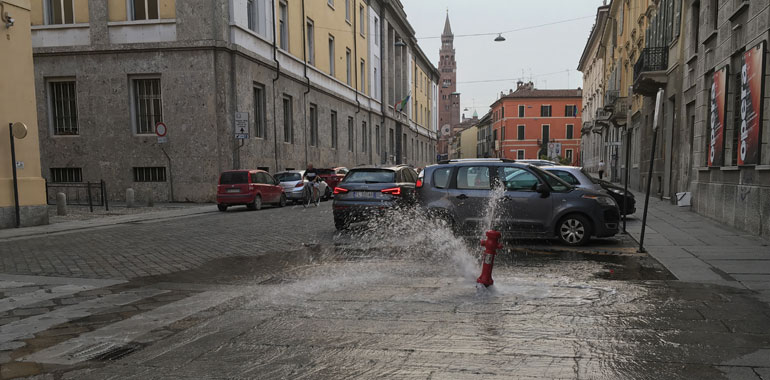 Un danno all’idrante posizionato sul marciapiede di corso Vittorio Emanuele, proprio davanti all’ingresso del Ponchielli, ha provocato la fuoriuscita di una grande quantità d’acqua che ha allagato sia la zona pedonale che parte della carreggiata. Per fermare il flusso ininterrotto è stato necessario richiedere l’intervento dei vigili del fuoco che prima hanno coperto l’idrante con un bidone vuoto della spazzatura, impedendo così la fuoriscita del getto, e poi hanno sollevato i tombini per individuare la saracinesca di chiusura dell’acqua. Tutto è iniziato poco dopo le 20 di questa sera a causa di un’Audi a bordo della quale c’era una donna che nell’effettuare manovra non si è accorta di avere dietro di sè la colonnina dell’idrante. La macchina l’ha presa in pieno, provocandone la rottura e la conseguente uscita d’acqua. Danni anche alla parte laterale posteriore della vettura. In quel momento sul corso Vittorio Emanuele stava transitando in scooter un agente della polizia municipale fuori servizio. Il poliziotto ha allertato i colleghi della municipale che in pochi minuti sono arrivati sul posto. A controllare la situazione c’era anche una pattuglia della squadra volante della Questura. A sincerarsi che tutto si risolvesse nel giro di poco e che non ci fosse il rischio che l’acqua entrasse anche nell’ingresso del teatro, anche il direttore del Ponchielli Angela Cauzzi.