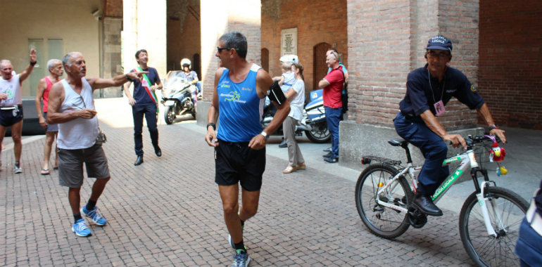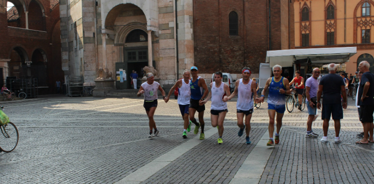La staffetta, seguita dal responsabile Luigi Viganò, come da da tradizione, è stata affiancata, dal confine con la provincia di Brescia fino in città, da un gruppo di podisti cremonesi, Maurizio Ceruti, Paolo Pini, Gianfranco Delfini, Giovanni Rossini (del gruppo Arredamenti Maiandi), Alberto Gennari e Massimo Aldovini (del Marathon Cremona). Anche un gruppo di ragazzi di Pozzaglio, accompagnati dal Vice sindaco Alessandro Ceruti, hanno seguito i podisti fino a Cremona. Dopo il saluto del Sindaco, uno scambio di doni e un velocissimo ristoro, la staffetta, sempre scortata da agenti della Polizia Stradale e della Polizia Locale, si è rimessa in marcia in direzione Castelvetro Piacentino, questa volta accompagnati da Annibale Rizzi del Marathon Cremona.