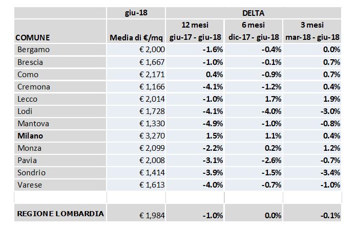 A Cremona i prezzi più bassi della Lombardia sia per le locazioni sia per comprare una casa. In controtendenza con il trend nazionale al ribasso dei prezzi del mattone, in Lombardia il primo semestre del 2018 ha visto segnali incoraggianti. Qui i valori degli immobili residenziali in vendita hanno raggiunto il punto di pareggio: è questa la principale evidenza dell’Osservatorio di Immobiliare.it sul mercato residenziale lombardo nei primi sei mesi del 2018. Va persino meglio sul fronte delle locazioni, ufficialmente in ripresa in regione tanto che i canoni richiesti sono aumentati dell’1,6% su base semestrale.