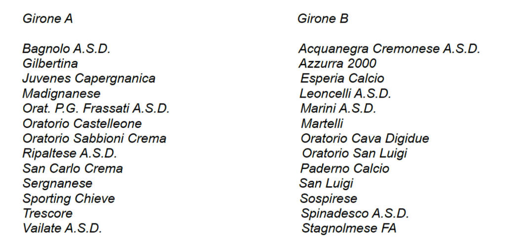 Terza categoria, ecco i gironi in cui giocheranno le squadre cremonesi