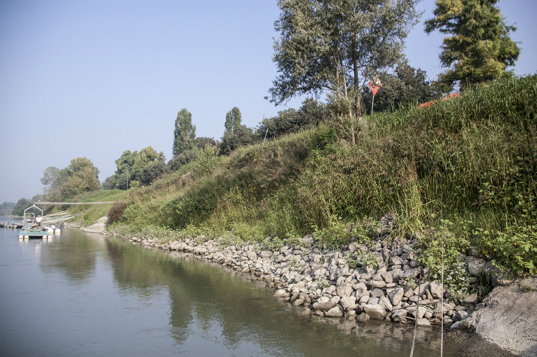 Al centro dell’intervento la massicciata e la pavimentazione che scende verso il fiume, in particolare nella parte bassa, che a seguito delle diverse piene che hanno interessato le rive del Po, avevano dato segni di cedimento.