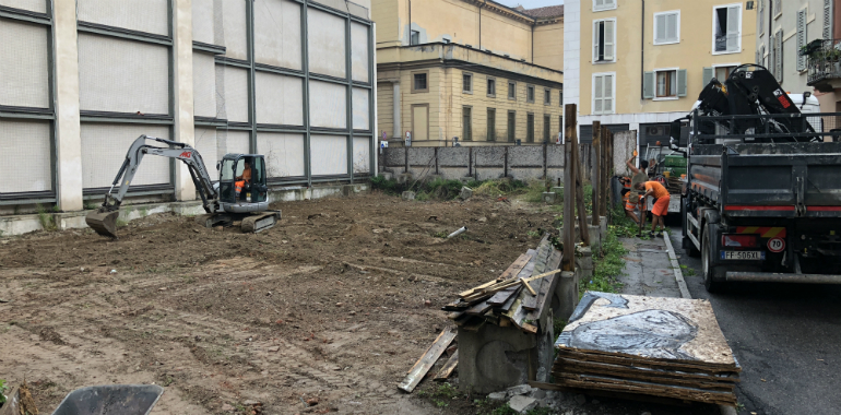 Le ruspe in via Goito, giù la palizzata, iniziati i lavori