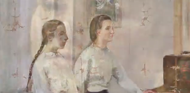 Particolari di alcuni dei quadri in mostra
