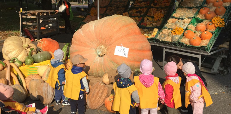 C’era l’entusiasmo dei ‘pulcini’, usciti da scuola per venire ad ammirare la mega-zucca di 628 chili, e c’era lo stupore degli anziani del quartiere, che si sono scoperti protagonisti della mostra fotografica a cielo aperto (con le loro fotografie, scattate presso il mercato di Campagna Amica, stese tra gli alberi del parco). C’era la genuinità dei prodotti proposti dagli agricoltori della Coldiretti (un gustoso omaggio a tutti i sapori dell’autunno, dai formaggi al pane, dalle zucche all’uva, dal vino ai salumi, dal miele ai dolci) e c’erano le bandiere – di Coldiretti, di Campagna Amica e naturalmente il Tricolore nazionale – che sventolavano tra i gazebo gialli.
