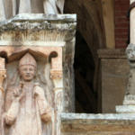 Roberto Fiorentini con il suo libro e la statua di Sicardo