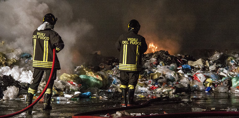 A fuoco i rifiuti alla piattaforma di via S. Rocco Nube nera sopra la città