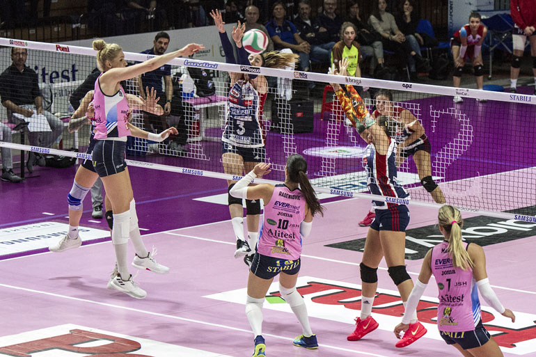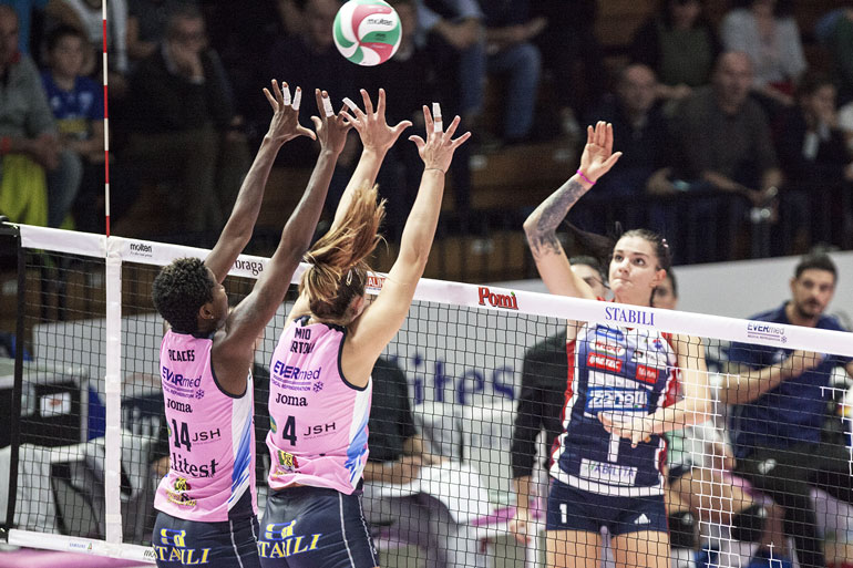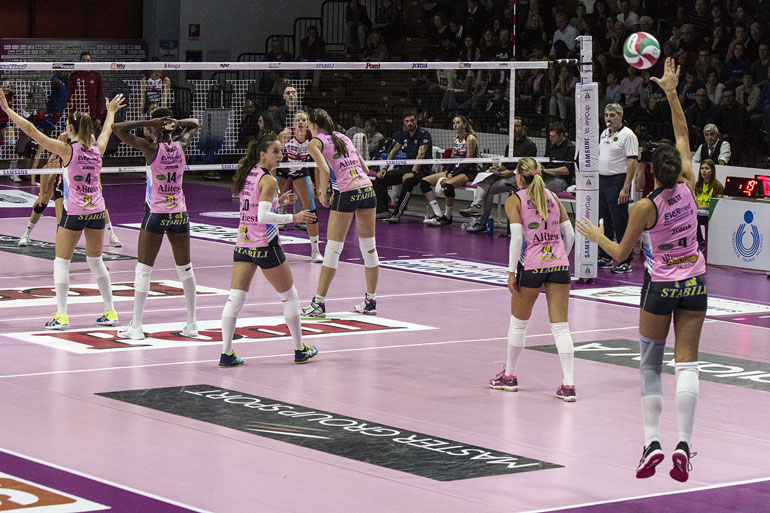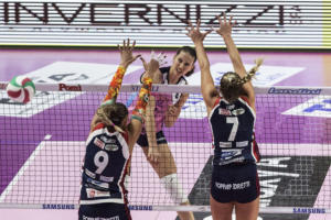 BERGAMO – 1 Smarzek, 2 Imperiali, 3 Olivotto, 5 Sirressi, 6 Courtney, 7 Tapp, 8 Carraro, 9 Mingardi, 10 Cambi, 17 Loda, 18 Acosta, 19 Strunijak.
