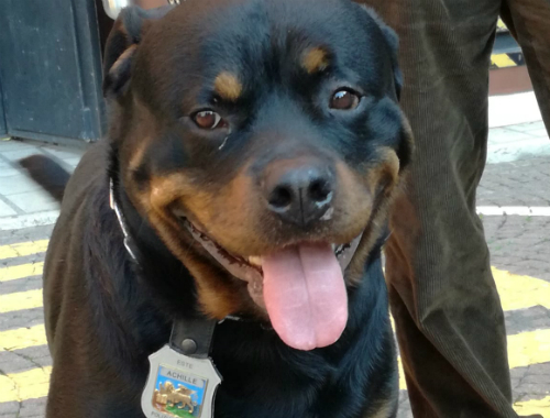 Da Cremona a Este, paese di 16mila abitanti in provincia di Padova, Achille un rottweiler 4 anni, è diventato un super agente e la sua storia è finita sulla Rai nella trasmissione di Giancarlo Magalli “I fatti vostri’ dello scorso 16 novembre. Da 4 mesi il rottweiler è in dotazione ai vigili urbani del comune padovano e ha un nuovo conduttore, la vigilessa Alessia. Il suo proprietario, il cremonese Simone Fanti si è separato dalla moglie e nessuno dei due poteva più tenerlo così grazie ad Aldo Taietti, istruttore di Achille da quando ha tre mesi, è stata cercata la migliore sistemazione. E si è aperta l’opportunità di farlo adottare ai vigili urbani di Este. Achille si è subito immedesimato nel ruolo di cane poliziotto ed è diventato la mascotte del comando di polizia locale. Mansueto, ma deciso, furbo e intelligente, addestrato per la ricerca di persone, per contrastare il traffico di droga, ricercare le sostanze stupefacenti e fare ordine pubblico. s.gal