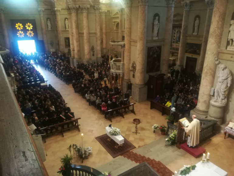 C’è un volo leggero, più forte della morte. C’è da qualche parte e si sente, nei pensieri di chi resta. Alcuni la chiamano anima, altri energia, la stessa dell’universo. Suonano le campane prima del rito funebre, ma non sono i ritocchi pesanti del messaggio funereo, sono campane lievi, nonostante tutto. Don Claudio Rubagotti, che celebrerà l’ultimo saluto a Marco Zani insieme a don Andrea Spreafico di Cicognara e don Samuele Riva, parroco di Sabbioneta spiega e invita tutti a lasciare da parte polemiche e sentenze. Oggi è il giorno del saluto.