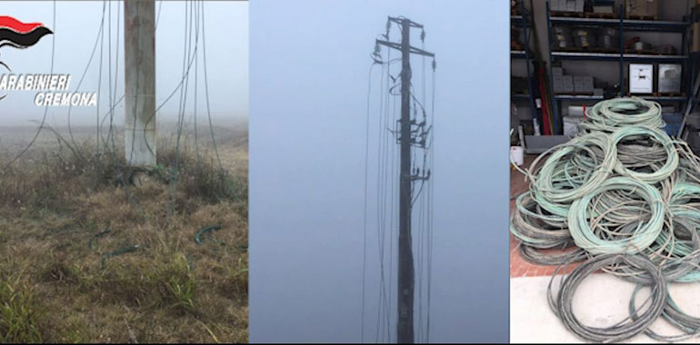 Nella notte tra il 23.11.2017 e il 24.11.2017 a Cremona tra via Sesto e via Milano asportavano 280 mt di cavi di rame della media tensione dai tralicci Enel s.p.a gestiti da “Linea reti e impianti srl.
