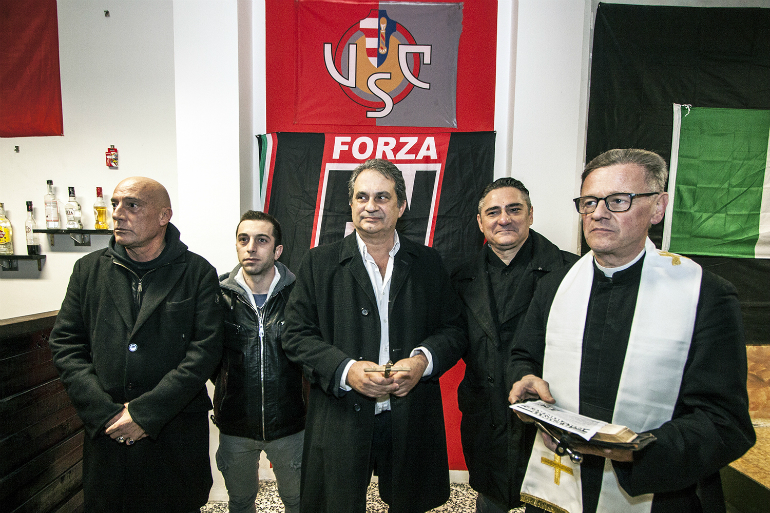 E’ stata inaugurata poco dopo le 16.00, in un quartiere Po blindato, la nuova sede cremonese di Forza Nuova. Come preannunciato, erano presenti, oltre al segretario provinciale Enrico Ricci, il coordinatore lombardo Salvatore Ferrara e il segretario nazionale Roberto Fiore. “Cremona – ha detto proprio Fiore – è una piazza dove l’estrema sinistra ha sempre fatto da padrone e a maggior ragione ka sede cremonese è importante. La mentalità degli italiani sta cambiando, il mondo del ’68 è morto: si va verso la rivoluzione”. Dopo il taglio del nastro e la benedizione della croce da parte di don Floriano Abrahamowicz, il vicecoordinatore regionale Oscar Rizzini ha spiegato come il nucleo cremonese, che conta un centinaio tra iscritti e simpatizzanti, è partito ad inizio anno in territori come Castelleone e Soresina teatro “di problemi di ordine pubblico, a partire dallo spaccio di stupefacenti”. Il segretario cremonese Ricci ha quindi ricordato che “in quest’anno siamo cresciuti molto, anche nel consenso della gente” e che puntano “a crescere ancora”. Il coordinatore lombardo Ferrara, infine, ha alzato i toni: “Siamo un movimento che fa sentire la propria voce e che è presente sul territorio. Non ci facciamo intimidire dalle provocazioni e dalle bombe (facendo riferimento alla bomba carta lanciata a Bologna nei giorni scorsi contro una sede di FN, ndr). Sappiamo che a Cremona ci sono Centri Sociali molto attivi, ma non abbiamo paura di loro: la Lombardia, comunque, è pronta ad intervenire per qualsiasi problema e la nostra risposta è proprio l’apertura di questa sede”.