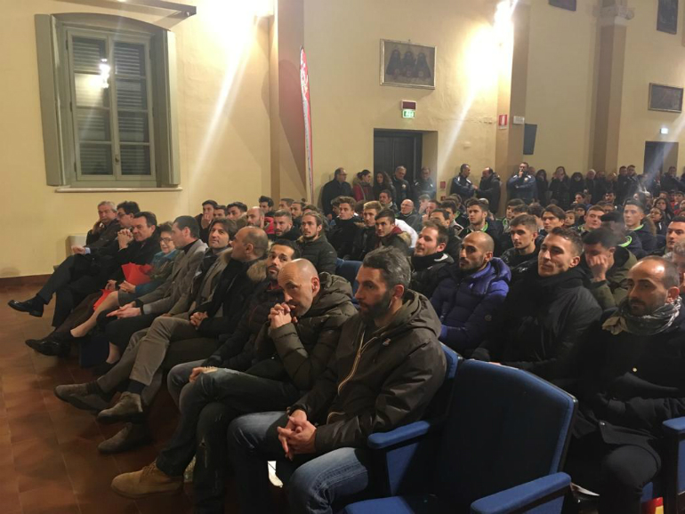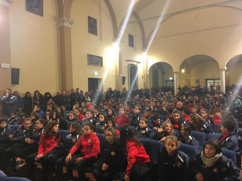 Armenia si è quindi rivolto ai ragazzi: “Per loro dev’essere un onore vestire questa maglia, ma anche una responsabilità: bisogna avere un comportamento irreprensibile dentro e fuori dal campo. Sinora è stato così, ma dobbiamo tenere alta la concentrazione e dare di più: dare il 100% non è più sufficiente per arrivare agli obiettivi che ci siamo prefissati”. “Infine – ha concluso il Dg – non va dimenticato l’obiettivo scolastico: oggi senza cultura non si va da nessun’altra parte. Capisco che è difficile, ma è solo questione di volontà”. Armenia ha quindi fatto i propri auguri alla sala, ringraziando per la presenza la prima squadra, ma anche i genitori e gli addetti ai avori.