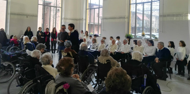 Sono dieci i partecipanti ai laboratori musicali del centro diurno Barbieri; 7 quelli che questa mattina hanno intonato il repertorio natalizio, insieme al alcuni elementi del coro Porta e ai bambini del coro di voci bianche. Una presenza, questa, particolarmente gradita ed espressamente richiesta dagli anziani che al centro diurno di via XI febbraio hanno spesso modo di interagire con le scolaresche.