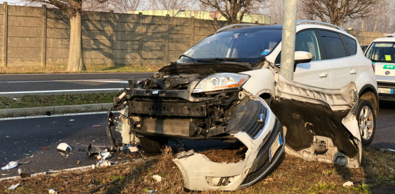 Schianto alle 9 di lunedì 7 dicembre lungo la tangenziale, in prossimità del distributore Tamoil, nel tratto di via Eridano. Forse a causa del ghiaccio, il conducente di una Ford Kuga in uscita dall’area di servizio con direzione largo Moreni, ha impattato lateralmente contro un autoarticolato, finendo la corsa contro un palo della segnaletica, facendolo piegare. Il conducente della Ford non è fortunatamente rimasto ferito, mentre l’auto è completamente distrutta. Sul posto per i rilievi del caso sono intervenuti gli agenti della Polizia Locale.