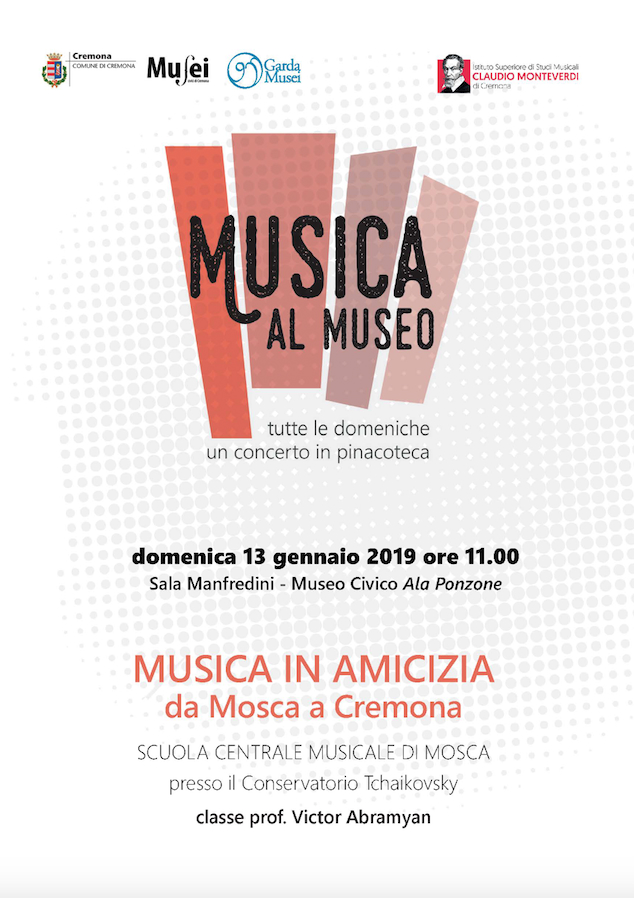 Riprende la rassegna 'Musica al Museo': domenica 13 in 'Amicizia da Mosca a Cremona'