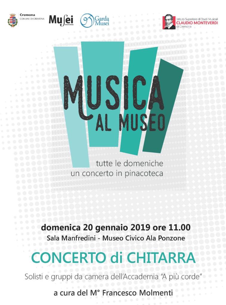 Il Concerto di chitarra è inserito rassegna Musica Al Museo, realizzata dal Comune di Cremona (Sistema Museale) in collaborazione con l’Istituto Superiore di Studi Musicali Claudio Monteverdi di Cremona, il Liceo Musicale A. Stradivari di Cremona e la Scuola primaria “Trento Trieste” ad indirizzo musicale (Istituto Comprensivo Cremona Uno).