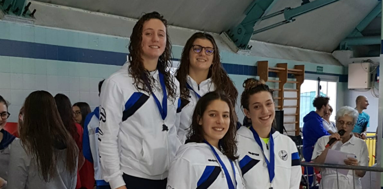 Le Junior hanno preso parte anche all’impegnativa 4x200sl con Giulia Gerevini da 2’10”51 in avvio, Melissa Mihai (2’20”08), Lucia Pasquale (2’16”96) e Caterina Morabito (2’25”20) realizzando 9’12”75. Bene anche le più giovani Ragazze che nella 4×100 mista si sono piazzate undicesime con Paola Roversi a dorso al personale in 1’08”15, Greta Iannone a rana (1’20”06), Silvia Denti a farfalla (1’11”32) ed Ester Raimondi a stile in chiusura da 1’05”11 per un totale di 4’44”64. Nella 4x100sl buona prova d’insieme per Silvia Denti (1’10”40), Greta Iannone (1’07”33), Ester Raimondi (1’04”63) e Matilde Cattadori (1’06”54) per un complessivo crono di 4’29”04 e su buoni livelli anche la 4x200sl di Paola Roversi, autrice del personale in prima frazione di 2’11”93, Beatrice Aletti (2’26”80), Aurora Denti (2’25”82) e Alice Castelli (2’30”00) per un discreto 9’34”55.