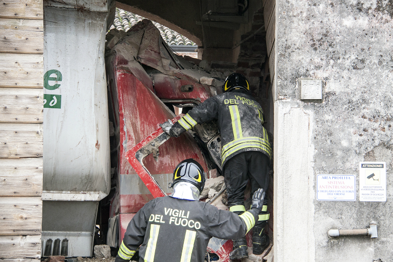 Sul posto sono accorsi i Vigili del Fuoco, che hanno transennato la zona: una volta scongiurato il rischio di esplosione per la fuga di gas che si era generata, sistemata dai tecnici comunali, si è deciso di lasciare la strada chiusa al traffico, almeno per il momento, in quanto c’è il rischio di crollo della struttura. Per questo motivo, per ora non è neppure possibile rimuovere il camion. I residenti sono quindi stati evacuati.