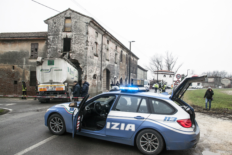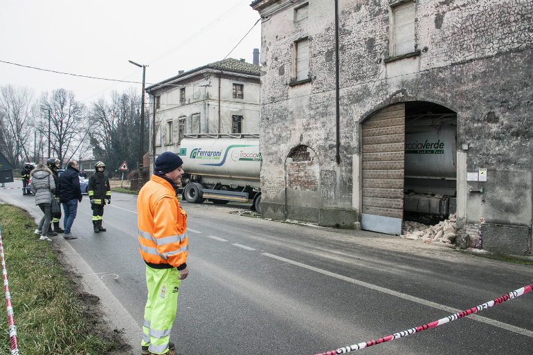 Sfonda col camion il muro di una cascina, rischio crollo, residenti evacuati