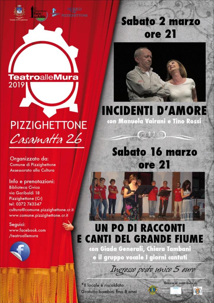 ‘Un Po di racconti e canti del Grande Fiume’. E’ questo il titolo del secondo appuntamneto della rassegna ‘Teatro alle Mura’ che avrà luogo sabato 16 marzo alle 21.00 nella casamatta 26 della cerchia muraria di Pizzighettone. ‘Teatro alle Mura’ dedica quindi il secondo spettacolo della rassegna al Po: l’arrivo della prima nave, una donna che vive sulle sponde del fiume, un uomo che sfida le sue piene per amore, un artista stralunato, Garibaldi, Farinacci … “se potesse parlare il Grande Fiume ne avrebbe di storie da raccontare”, sottolineano gli organizzatori. Le voci narranti ne conoscono solo alcune e,nel raccontarle, si faranno aiutare dai canti popolari che accompagnano lo scorrere delle acque del Po. Protagonisti dello spettacolo saranno con Giada Generali, Chiara Tambani e il gruppo di canti popolari ‘I giorni cantati’. Il costo del biglietto è di 5 euro, con ingresso libero per i bambini al di sotto degli otto anni. I biglietti si potranno acquistare alla biglietteria della casamatta 26 a partire da mezz’ora prima dello spettacolo, presso la Gelateria Masters Café (Piazza Mameli 1) e la Cartolibreria La Torre (Largo Vittoria 6). Per informazioni e prenotazioni si può infine contattare la Biblioteca Civica (via Garibaldi 18) telefonando allo 0372 743347, scrivendo all’indirizzo e-mail cultura@comune.pizzighettone.cr.it o consultando la pagina Facebook www.facebook.com/teatroallemura.