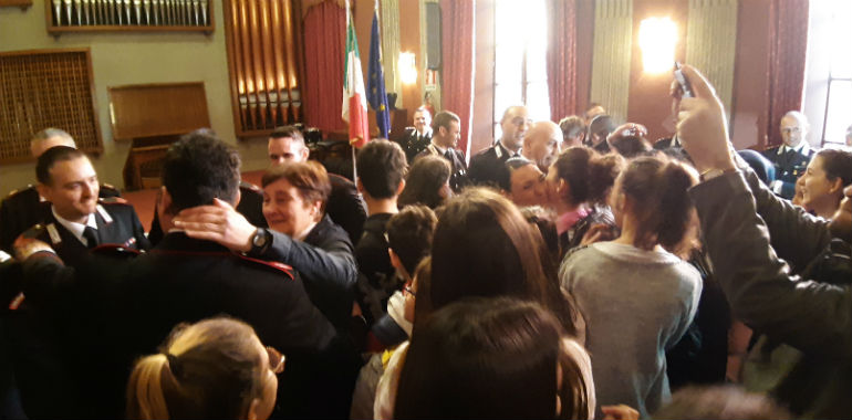 Emozionata anche la collaboratrice scolastica Tiziana Magarini, che ha potuto incontrare il carabiniere che le ha salvato la vita: “Ha messo a rischio la sua, per salvare me. Gli sarò eternamente riconoscente”.