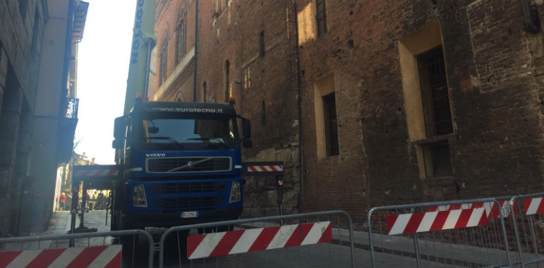 Sono iniziati di prima mattina i lavori per la messa in sicurezza della torre Civica di palazzo Comunale da cui nei giorni scorsi si era distaccato materiale lapideo. Via Baldesio resterà chiusa per tutta la mattina e parte del pomeriggio.