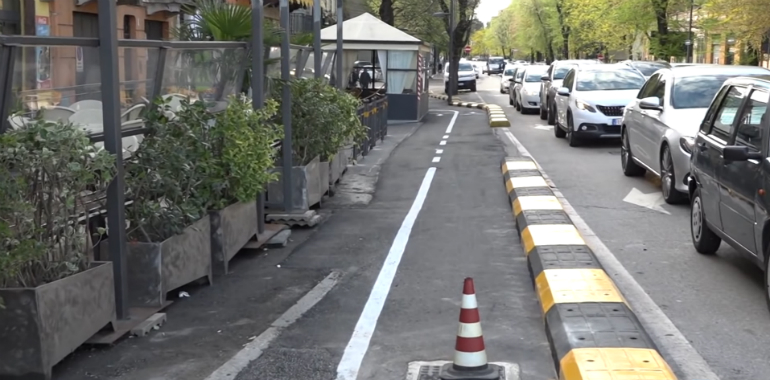 Pessima, secondo Fasani, anche la scelta del tracciato in prossimità del plateatico di bar e gelateria a porta Venezia, letteralmente appiccicato al gazebo. “Una ciclabile Potemkin”, ironizza il consigliere parafrasando il titolo del film sovietico divenuto sinonimo di fantozziane disgrazie. Fasani interviene anche sui social, dove fioccano foto e commenti sulla nuova ciclabile. Molti anche positivi e che sottolineano, come fa Eleonora Sessa, come anche l’amministrazione Perri cinque anni fa a ridosso delle elezioni, volle identificare la ciclabile proprio su quel viale, tracciando una riga gialla. “Ma quella non era una pista – ribatte Fasani – Era una corsia, il tentativo di dare un minimo di sicurezza ai ciclisti. È costata zero euro e nessuno si è mai fatto male. Questa attuale, è costata centinaia di migliaia di euro, fa schifo, è piena di pericoli per le persone!”.