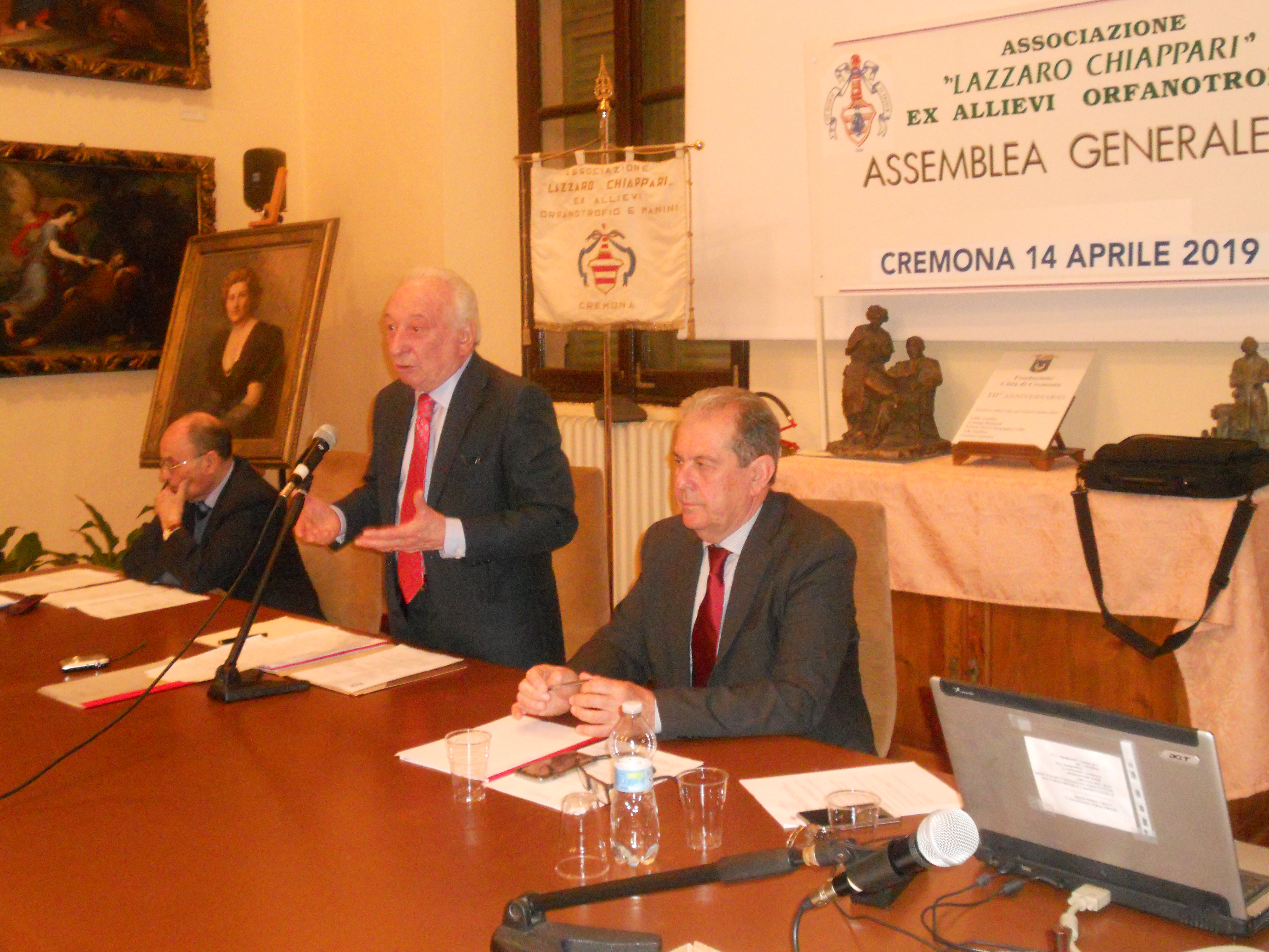 Dopo la relazione del segretario Silvano Turci sulle attività dell’anno passato e la relazione del vicepresidente della ‘Chiappari’ Fiorenzo Bassi, sui positivi rapporti con la Fondazione città di Cremona, della quale è Consigliere, svolti con reciproca collaborazione e condivisione di intenti sociali, il presidente Arnaldo Scazzoli ha evidenziato la continuità operativa nei presupposti solidaristici, ancora portati a compimento a favore degli allievi delle “Comunità Educative” per Minori, già Barbieri, in gestione alla Cooperativa Educatori ‘Sentiero’, sotto l’egida del Comune. Cui va unita l’azione da sempre sostenuta per il bisogno di ex allievi indigenti o in difficoltà.