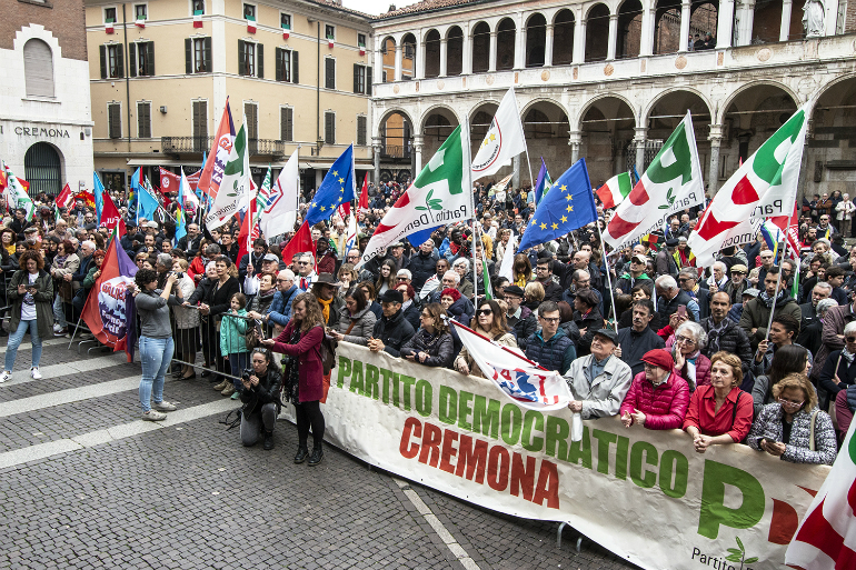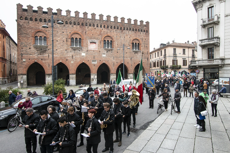 Il corteo ha preso il via intorno alle 10.30, ha percorso corso Garibaldi, poi corso Campi, per svoltare quindi in piazza Stradivari e portarsi in piazza del Comune. Sul palco allestito sulla piazza si sono succeduti i rappresentanti istituzionali, per i saluti e le dichiarazioni di rito. “Il 25 aprile unisce la società” ha detto il sindaco Gianluca Galimberti, che con il consueto entusiasmo ha parlato alle persone presenti. “Abbiamo bisogno delle istituzioni e abbiamo bisogno che continuino a garantire la libertà. Perché uno Stato fondato sulla Costituzione è un inno alla libertà e alla democrazia”. Una democrazia che, secondo il primo cittadino, va ravvivata: “Bisogna trasformare una democrazia stanca in una democrazia viva, che include tutti, soprattutto chi sta ai margini della società”.