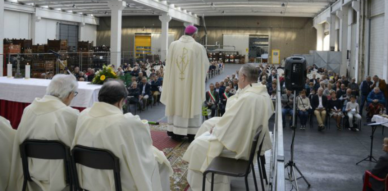 Il vescovo Antonio alla Socrem di Caravaggio per messa del Primo Maggio