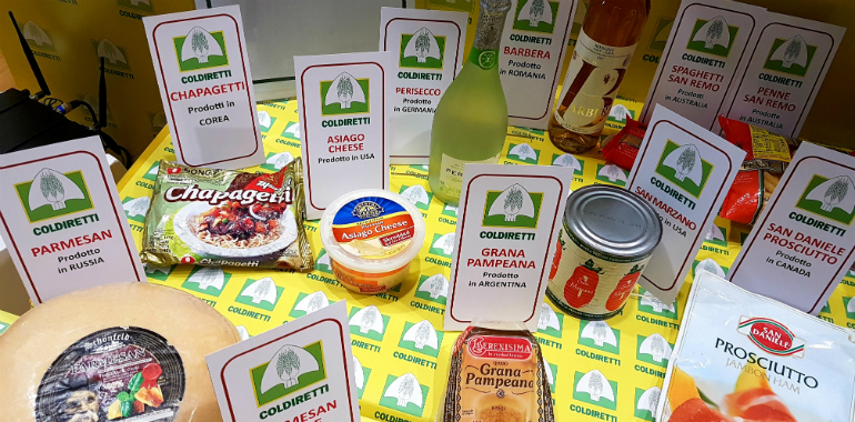 In testa alla classifica dei prodotti più taroccati secondo la Coldiretti ci sono i formaggi, a partire dal Parmigiano Reggiano e dal Grana Padano, con la produzione delle copie che ha superato quella degli originali, dal parmesao brasiliano al reggianito argentino fino al parmesan diffuso in tuti i continenti. Ma ci sono anche le imitazioni di Provolone, Gorgonzola, Pecorino Romano, Asiago o Fontina. Tra i salumi sono clonati i più prestigiosi, dal Parma al San Daniele, ma anche la mortadella Bologna o il salame cacciatore e gli extravergine di oliva o le conserve come il pomodoro San Marzano che viene prodotto in California e venduto in tutti gli Stati Uniti. Dal Bordolino argentino nella versione bianco e rosso con tanto di bandiera tricolore al Kressecco tedesco, oltre al Barbera bianco prodotto in Romania e al Chianti fatto in California, il Marsala sudamericano e quello statunitense sono invece solo alcuni esempi delle contraffazioni e imitazioni dei nostri vini e liquori più prestigiosi.