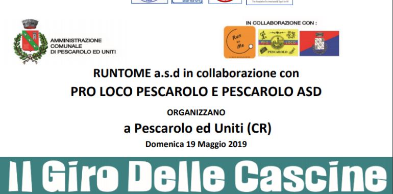 Si chiama Giro delle Cascine 2019 l’evento podistico che si terrà a Pescarolo il 19 maggio 2019, promosso da RunToMe Asd, ProLoco Pescarolo e Comune di Pescarolo. La corsa avrà partenza libera, a ritmo libero, dalle ore 8.30 fino alle 9.30. I percorsi a scelta, ottimali per qualsiasi livello di preparazione, dalla camminata leggera, a chi macina molti chilometri.