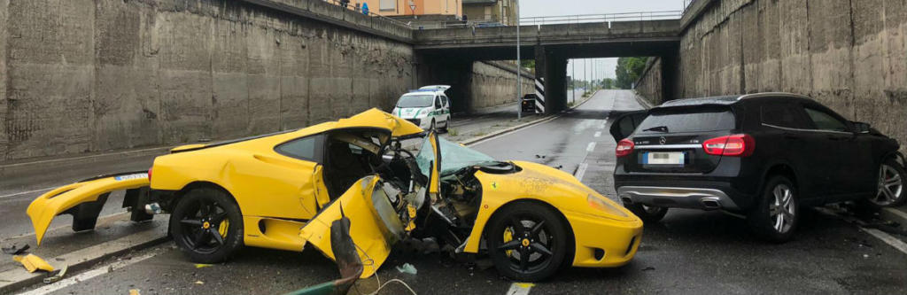Drammatico scontro in via Eridano. Ferrari distrutta e tangenziale bloccata