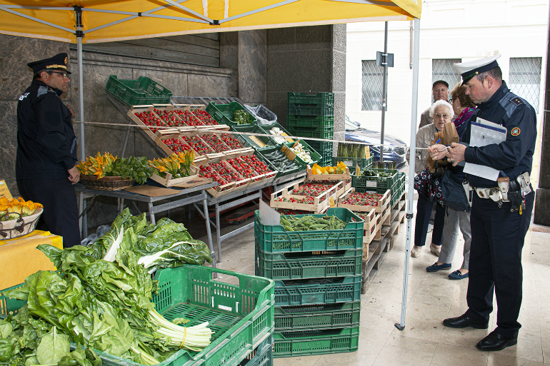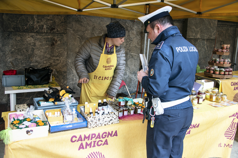 Non si è fatta attendere la reazione del Comune: intorno alle 10.15 la Polizia Locale di Cremona ha fatto un blitz sotto i portici del Consorzio, identificando tutti i produttori locali presenti con i propri stand e misurando ogni banco. E’ seguita la consegna di un verbale ispettivo a tutti i presenti, in cui si indica che non è stata visionata “alcuna documentazione riguardo la regolarità dell’attività esercitata” e che verrà fatta “una valutazione successiva”.