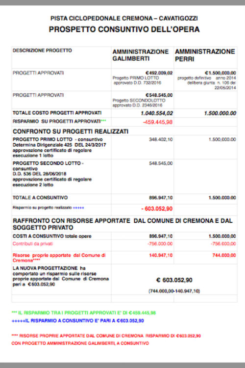 2. CAVATIGOZZI – realizzata e migliorata con risparmio di 600 mila euro rispetto al progetto della Giunta Perri già finanziata e approvato il progetto di prossima realizzazione della connessione con Spinadesco; presentato progetto per messa in sicurezza via Milano;