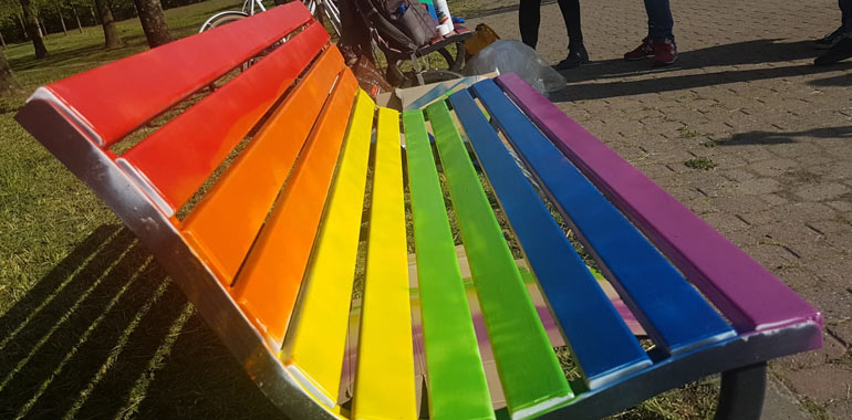 Giornata contro l'omofobia: panchina rainbow al Parco Po