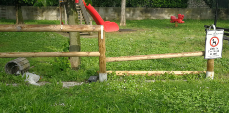 Vandali scatenati al parco di Casanova: imbrattato il canestro e staccionata divelta