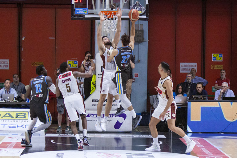 Grande impresa della Vanoli che batte Venezia 78-74 in Gara 2 di semifinale scudetto e pareggia la serie. Cremona conduce i primi due Quarti come già nel primo atto della serie, ma quando i veneti terminano in vantaggio il terzo periodo il PalaRadi inizia a temere il peggio. Invece la squadra di Meo Sacchetti rimane in partita e supera in volata la squadra di Walter De Raffaele. La Vanoli inizia la partita con grande intensità e, dopo meno di due minuti, è già 5-0 grazie a Saunders e costringe Venezia al time out. Al rientro cinque punti di Mathiang danno il 10-2 interno. L’entrata in campo di Daye (3 triple per lui e un assist per i tre punti di Bramos) cambia però gli equilibri e permette a Venezia di rientrare velocemente (14-14). Risponde immediatamente Diener per il 18-16. Un canestro da sotto di Gazzotti permette alla Vanoli di chiudere in vantaggio al decimo (22-20). Nel secondo parziale Crawford e Saunders danno subito il più 8 a Cremona (28-20). A Bramos e De Nicolao risponde Saunders ma è Haynes che si accende e, nonostante i due canestri di Mathiang, riporta tutto in parità a un minuto dall’intervallo (37-37). Due liberi di Diener mandano tutti negli spogliatoi con Cremona in vantaggio di un possesso (39-37). Il terzo quarto, come già due giorni fa, sembra dare la spinta a Venezia che prova una prima volta ad allungare con Watt e Bramos (43-49), ma qui Cremona è brava a non scomporsi e a rientrare con la tripla di Crawford (49-49). Venezia ci riprova (49-53) ma ancora Ricci da fuori riporta tutto in parità (53-53). Due canestri da tre di Daye e Tonut riportano Venezia in vantaggio 58-62 ma il canestro di Stojanovic fa partire l’ultimo quarto con i biancoblu in svantaggio di soli due punti. Gli ultimi dieci minuti la difesa di Cremona sale decisamente di colpi costringendo per ben due volte l’attacco di Venezia all’infrazione di 24 secondi. D’altro canto la Vanoli non perde un solo pallone e riesce a trovare anche buona fluidità offensiva con 6 assist. L’ultimo vantaggio Reyer è al 33′ con la tripla di Heynes (64-65) poi Stojanovic trova la via del canestro e subito dopo Saunders piazza la schiacciata in contropiede subendo anche fallo da Daye (69-65). Mancano cinque minuti e Diener decide di mettere il suo sigillo sulla partita, prima con una tripla, poi con un assist al bacio per il taglio sotto di Crawford (74-70). Watt accorcia ma un altro assist del numero sette biancoblu accende Mathiang che ridà il doppio vantaggio ai suoi. La tripla di Bramos non va e i liberi di Saunder chiudono la partita. Finisce 78-74.