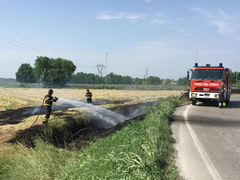 Sterpaglie in fiamme a bordo strada a Spinadesco Vigili del Fuoco in azione