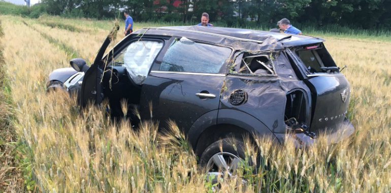 Dopo circa due chilometri di inseguimento, con tanto di manovre pericolose, il fuggitivo ha lanciato l’auto dentro un campo di frumento, utilizzando una rampa di terreno come trapolino di lancio, superando così un canale irriguo. Nella sua manovra ha però perso il controllo del veicolo, che si è ribaltato. L’uomo è riuscito comunque a uscire incolume dall’abitacolo, per poi darsi alla fuga nella vicina via delle Viole.