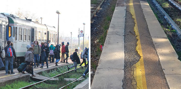 Banchina in pessime condizioni alla stazione di Robecco: la protesta dei pendolari