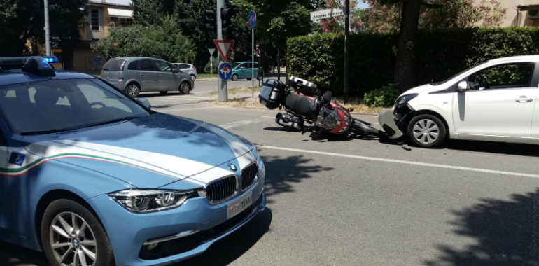 Auto contro moto in via Fontana, ferite lievi per un 49enne