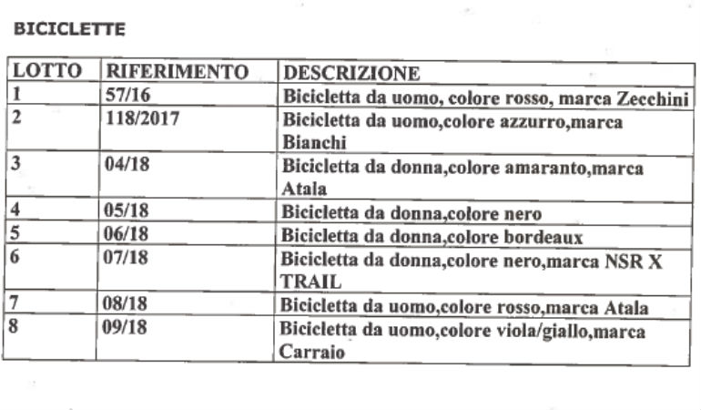 Biciclette all'asta, mercoledì 3 luglio all'ex mercato ortofrutticolo