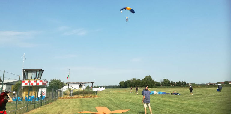 Degrada è stato accompagnato da Valerio Grassi dell’associazione Sky Team, già invitato nell’agriturismo delle nipoti di Giuseppe a Canevino, Oltrepo pavese, e che già lo aveva scortato nei cieli due anni fa, ed è stato atteso a terra da Roberto Magarini, Fabio Cristofolini e tutti coloro che tengono alto a Cremona e provincia l’onore della Folgore e dei paracadutisti in genere. Giuseppe al suolo è stato anticipato solo di qualche minuto da Carolina Benedini, che ha filmato tutto dalla Go Pro e ha dato una prima impressione più che tranquillizzante. “Sta benissimo, è molto felice e sta seguendo tutte le istruzioni: è bravissimo, come sempre”.