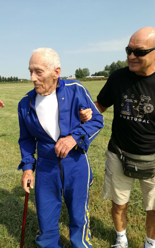 Degrada l’aveva promesso, o meglio aveva lanciato quella che sembrava una speranza: “Mi piacerebbe tanto rifarlo”. Frase pronunciata il 25 aprile 2017, quando a 96 anni onorò il Giorno della Liberazione sempre alla stessa maniera, la sua maniera: dominano i cieli con la protezione di un paracadute. Fece storia, quel lancio, ne parlarono i media nazionali. Sembrava un sogno, si diceva, un desiderio destinato a non essere mai realizzato. E invece: giunto alle 8.30 di sabato al Migliaro di Cremona, abbastanza presto per schivare i problemi legati al gran caldo di questi giorni, Degrada con il copricapo della Folgore, un cimelio che per lui è prima di tutto simbolo di una scelta di vita, è stato vestito di tutto punto per affrontare il volo e poi lanciarsi. Accompagnato dal figlio Claudio, in memoria della moglie Olga scomparsa nel novembre dell’anno scorso, Giuseppe si è così regalato l’adrenalina dei tempi che furono.