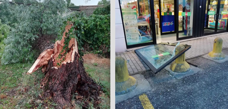 Tra San Giovanni in Croce e Piadena è caduta una pianta sulla provinciale. Cartellonistica stradale caduta a Casalmaggiore e cartelloni elettorali caduti a Martignana. A Calvatone, inoltre, il temporale è stato particolarmente intenso. Molti degli interventi – come detto – sono tutt’ora in corso. Tornando a Casalmaggiore, è stata sospesa la serata dei Giochi senza Frontiere, che era stata inserita per questa sera all’interno del calendario della Fiera di Piazza Spagna. Dal sindaco Filippo Bongiovanni l’invito a segnalare eventuali danni o guasti, mentre una prima conta dei danni – stando alla pagina Facebook del primo cittadino – tocca il parco Bodana Bastoni, piazza Garibaldi sul palco, via Repubblica sulla ciclabile, via Zuccari Fermo, via Combattenti Alleati presso il Nido, zona Baslenga al campo di atletica e allo stadio da calcio “Icio Ferrari”, Lido Po. L’invito è a non inoltrarsi nel parco Golena del Po, mentre Polizia Stradale e Polizia Locale sono impegnate nel pattugliamento.
